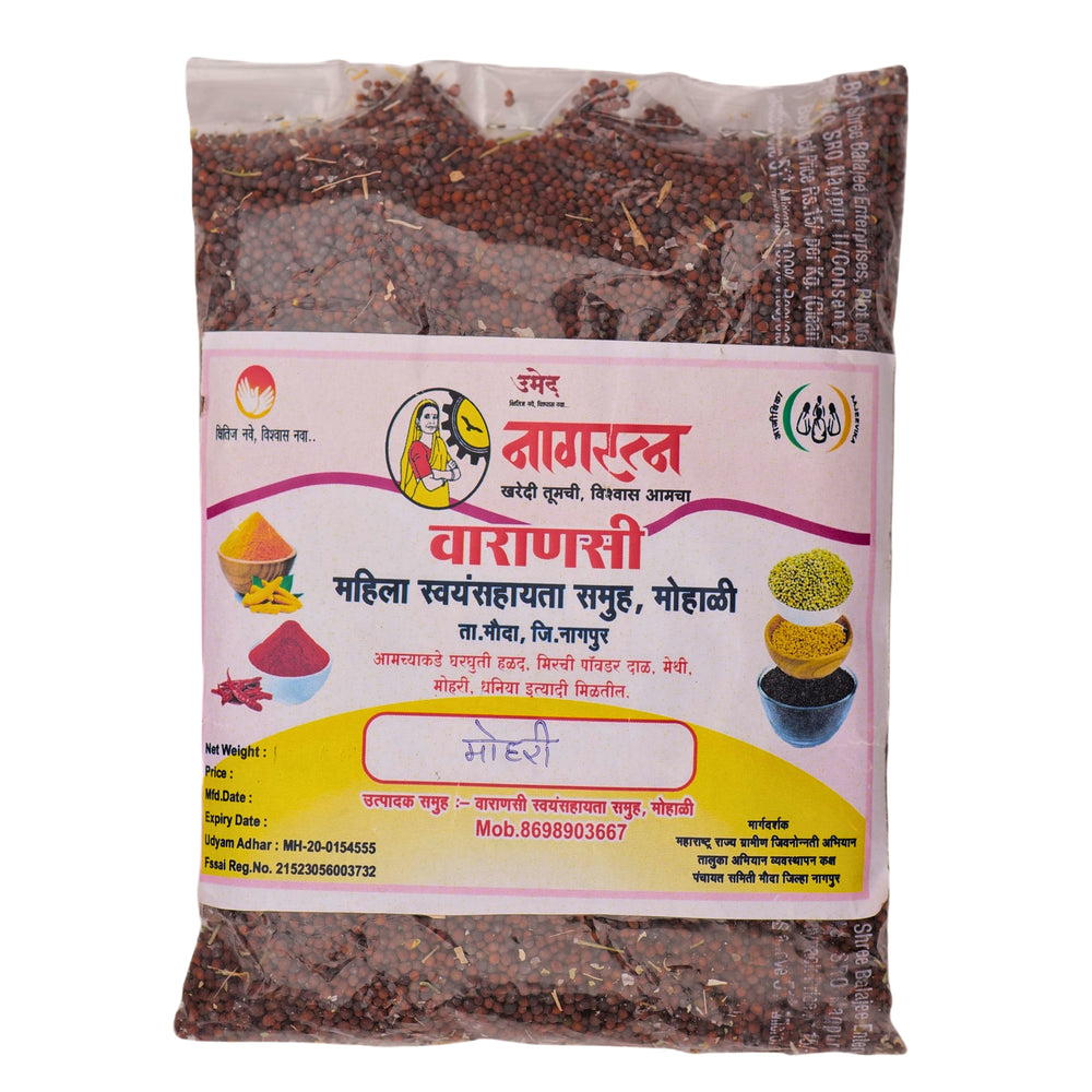 Mohari, also known as mustard seeds, is an essential spice in Indian cooking. These mustard seeds are naturally grown and hand-processed by the women of VARANASI SHG. Rich in flavor and aroma, they are ideal for tadka (tempering), pickles, and spice mixes. Free from chemicals and additives, this Mohari is packed with purity and traditional taste.