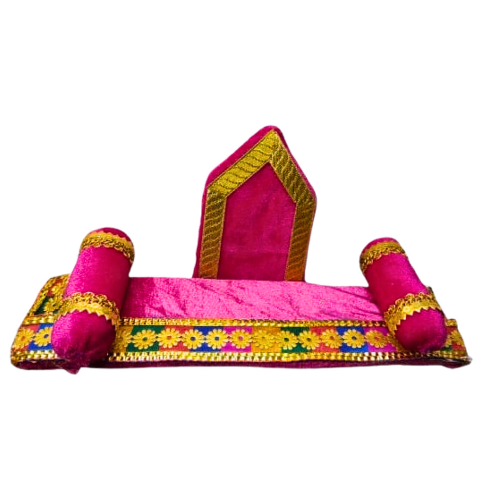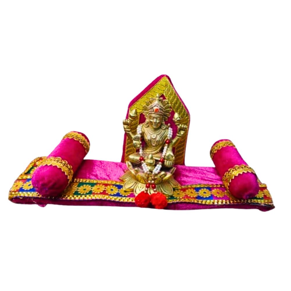 MORAYA Pink Velvet Pooja Aasan for God Idol/Chowki Aasan, Kapda Cloth for Puja, Shelf Home Mandir, God Idol Sitting Golden Less, Rukhamini SHG, Pack Of 1