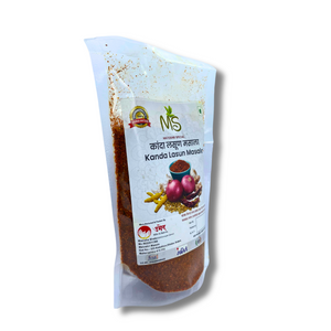 MS Masale Kanda Lasun Masala offers numerous benefits, both in terms of flavor and health. The masala is made using a balanced mix of onions (kanda), garlic (lasun), and other natural spices, offering a rich and savory flavor profile that enhances your favorite Indian dishes. The absence of artificial preservatives ensures that you enjoy the authentic taste of traditional spices without compromising on health. Whether you're preparing curries, stir-fries, or snacks, this masala adds a depth of flavor that is both robust and aromatic.