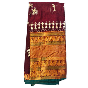 Handpainted Warli Painting Saree – Crafted by Nav Tejaswini Warli Unit FPO