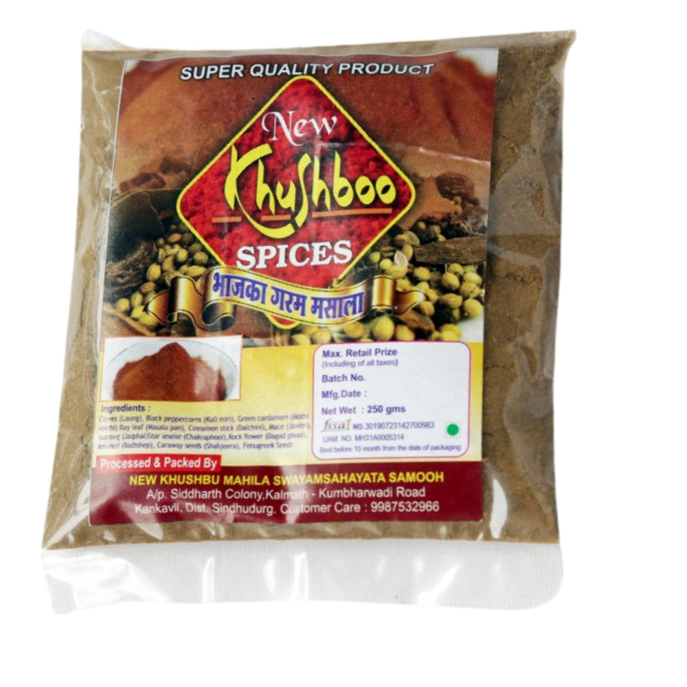 Enhance the flavors of your culinary creations with NEW KHUSHABU Bhajaka Garam Masala. This premium spice blend is meticulously crafted by the skilled members of the New Khushboo Self Help Group from Kalmath village, Tal- KANKAVALI, Dist. Shindhudurg, Maharashtra. Made from natural ingredients and free from artificial chemicals, this masala is a harmonious mixture of approximately 15 spices, including coriander seeds, cumin seeds, cloves, cinnamon, and turmeric. Bring the authentic taste of traditional Indian cuisine to your kitchen with NEW KHUSHABU Bhajaka Garam Masala, and elevate your dishes with its rich and aromatic flavors.