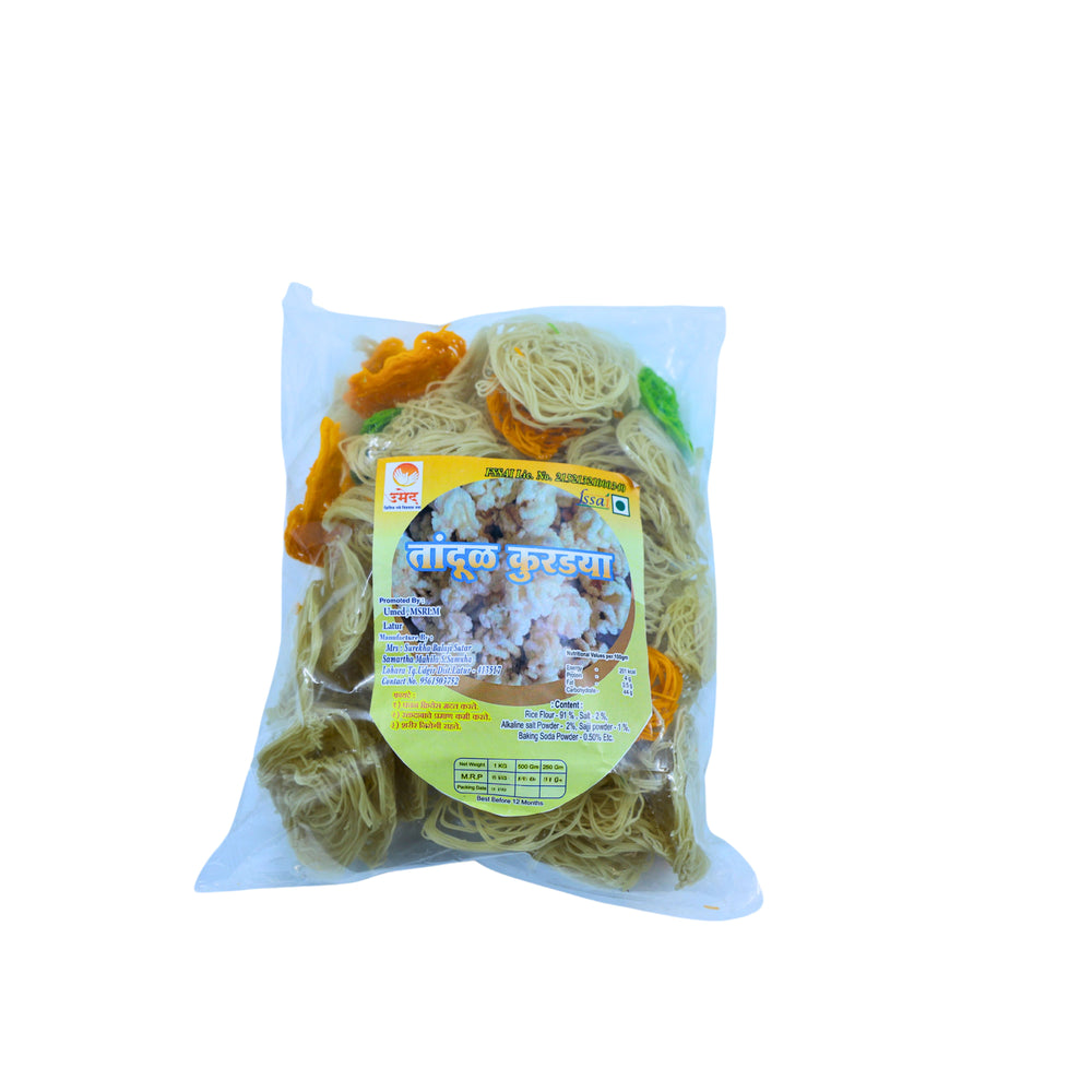 PIYUSH GRUH UDYOG, Rice Kurdai, Handmade, Samarth SHG, High-Quality Ingredients, Crispy, Flavor, Pack of 1000 gms