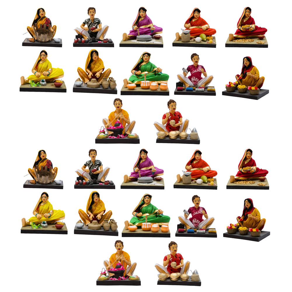 Pragati Combo Pack: Bhajani, Warkari & Bara Balutedar Clay Statues – Handcrafted, Natural Soil Statues | Empower Rural Women