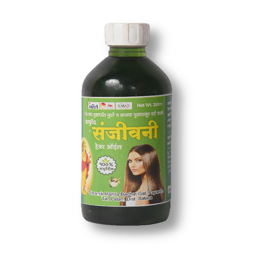 SANJIVANI Hair Oil is an all-natural Ayurvedic formula crafted with care by Shramik Mahila Bachat Gat, a dedicated Self-Help Group (SHG) from Satara, Maharashtra. This 250 ml pack of hair oil is made using only natural ingredients, free from any artificial essence or chemicals, making it the ideal choice for a healthy and nourishing hair care routine for the entire family. This traditional Ayurvedic blend promotes hair growth, prevents hair fall, and nourishes the scalp, leaving your hair stronger, shinier, and full of life. By choosing SANJIVANI Hair Oil, you are embracing a natural, sustainable lifestyle while also supporting rural women entrepreneurs who are committed to creating healthier, eco-friendly products.
