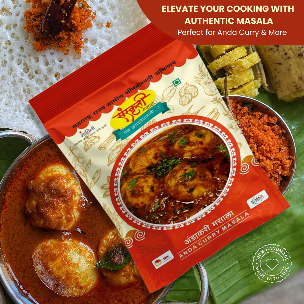 Experience the rich and aromatic flavors of Maharashtra with every sprinkle of Sanskruti Anda Curry Masala. Add a touch of tradition to your cooking, support rural artisans, and make a difference with every purchase. Join us in our mission to empower communities, preserve heritage, and spread joy, one spice blend at a time!