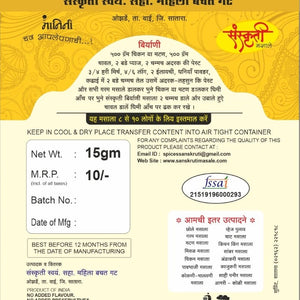- Preserve Cultural Heritage: With every purchase of Sanskruti Masala, you play a vital role in preserving the rich culinary heritage of Maharashtra for generations to come.