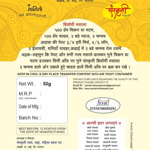 SANSKRUTI Biryani Masala,Made By Natural Ingredients,No Artificial flavour,pack of 50 gm