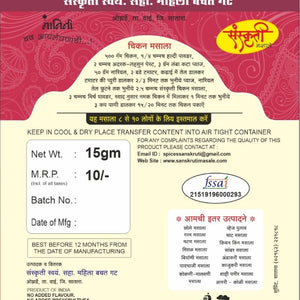 - Authentic Taste: Indulge in the rich and authentic flavors of Maharashtra with every sprinkle of Sanskruti Masala.