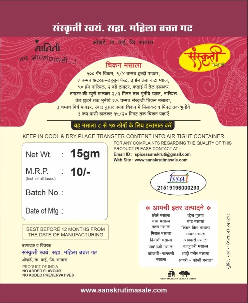 - Manufacturer: Sankruti Svayam Sahayata Mahila Bachat Gat