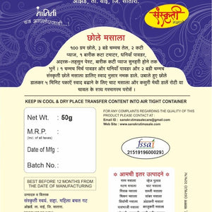 SANSKRUTI Chole Masala,Made By Natural Ingredients,No Artificial flavour,pack of 50 gm