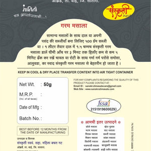SANSKRUTI Garam Masala,Made By Natural Ingredients,No Artificial flavour,pack of 50 gm