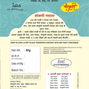 SANSKRUTI Konkani Masala,Made By Natural Ingredients,No Artificial flavour,pack of 50 gm