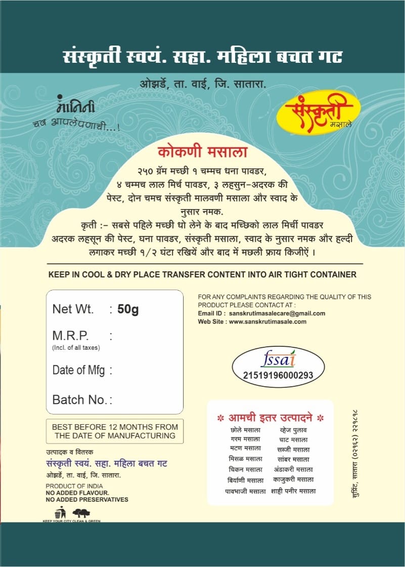 - Natural Ingredients: We believe in the purity of flavors. Sanskruti Masala contains only natural ingredients sourced locally from Maharashtra.