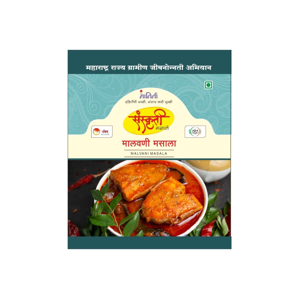 Discover the rich and exotic flavors of Malvani cuisine with Sanskruti Masala, a premium blend meticulously crafted by Sankruti Svayam Sahayata Mahila Bachat Gat from the heart of Wai, Maharashtra. Made with a blend of natural ingredients and free from any artificial essence, each 15 pack encapsulates the vibrant and authentic taste of Malvani spices.