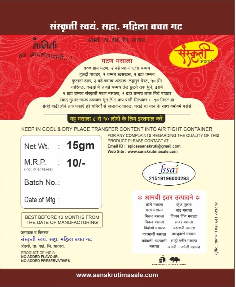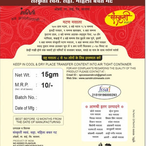 - Natural Ingredients: We believe in the purity of flavors. Sanskruti Masala contains only natural ingredients sourced locally from Maharashtra.