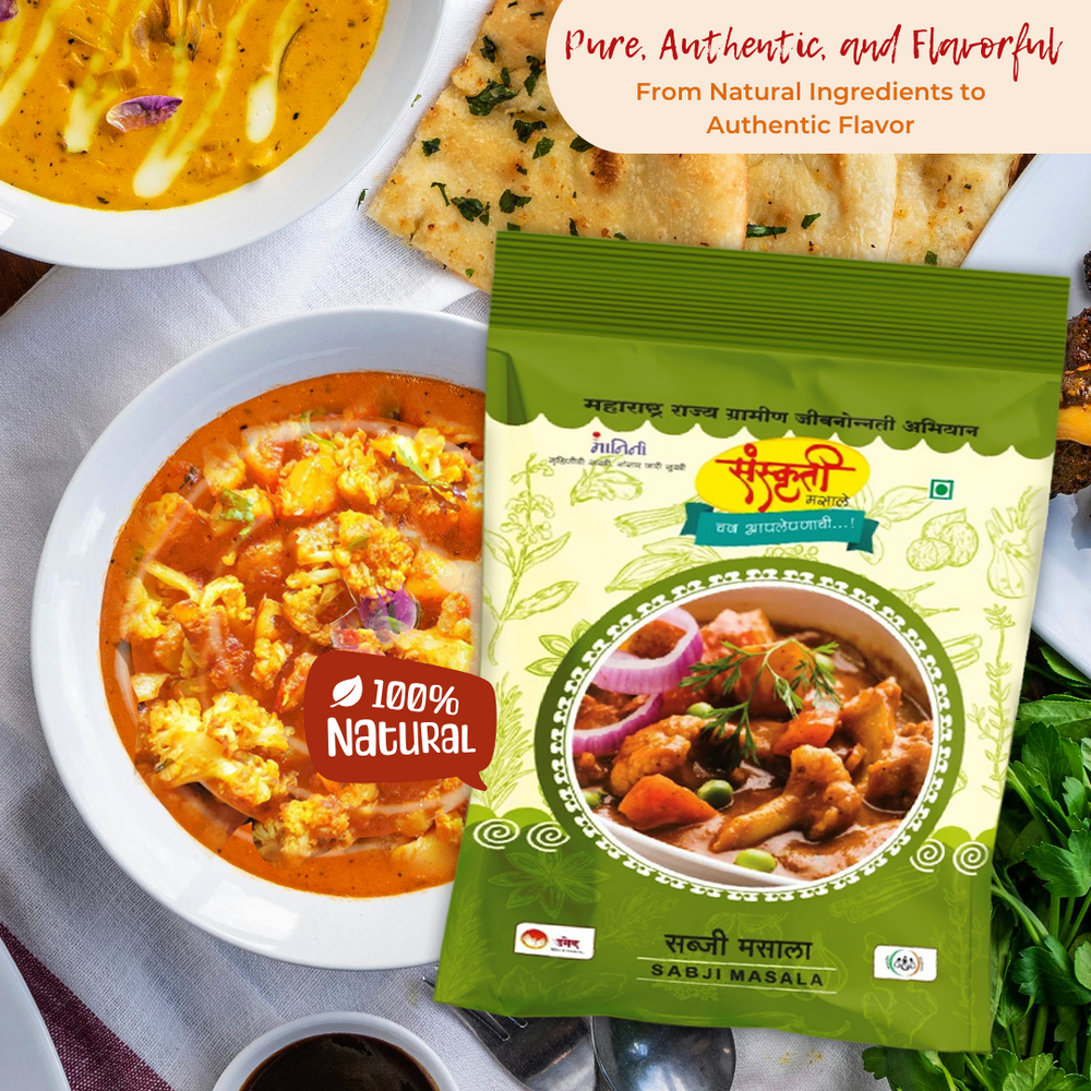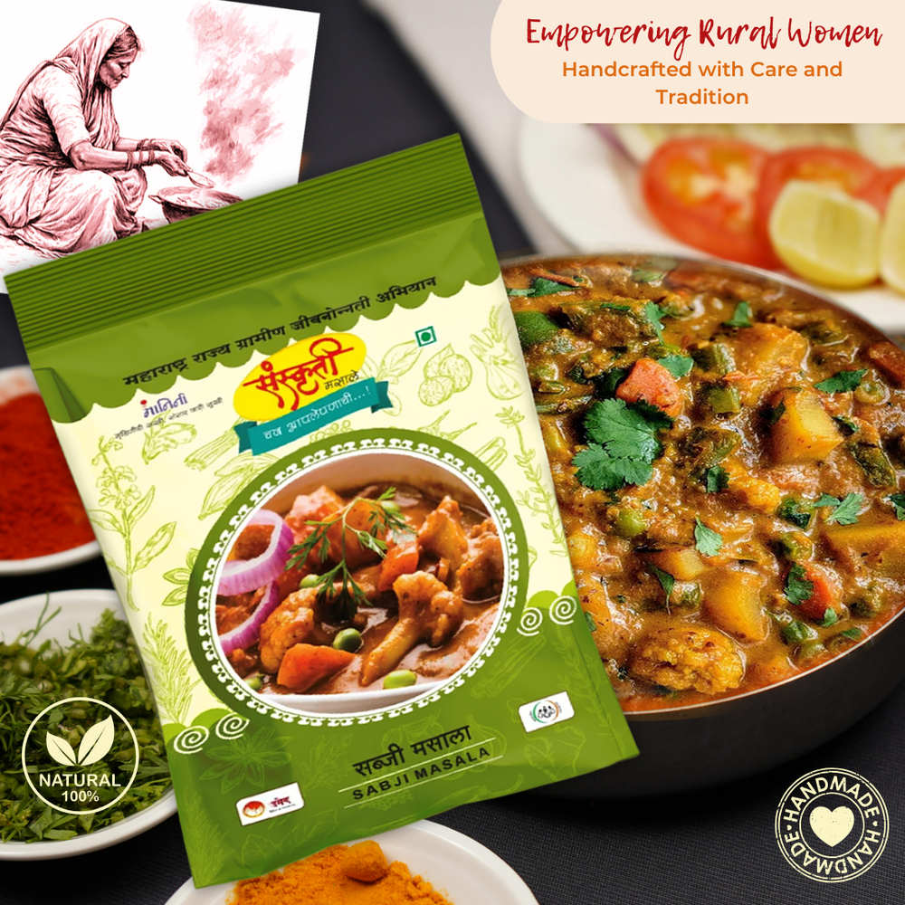 Experience the rich and aromatic flavors of Maharashtra with every sprinkle of Sanskruti Sabji Masala. Add a touch of tradition to your cooking, support rural artisans, and make a difference with every purchase. Join us in our mission to empower communities, preserve heritage, and spread joy, one spice blend at a time!