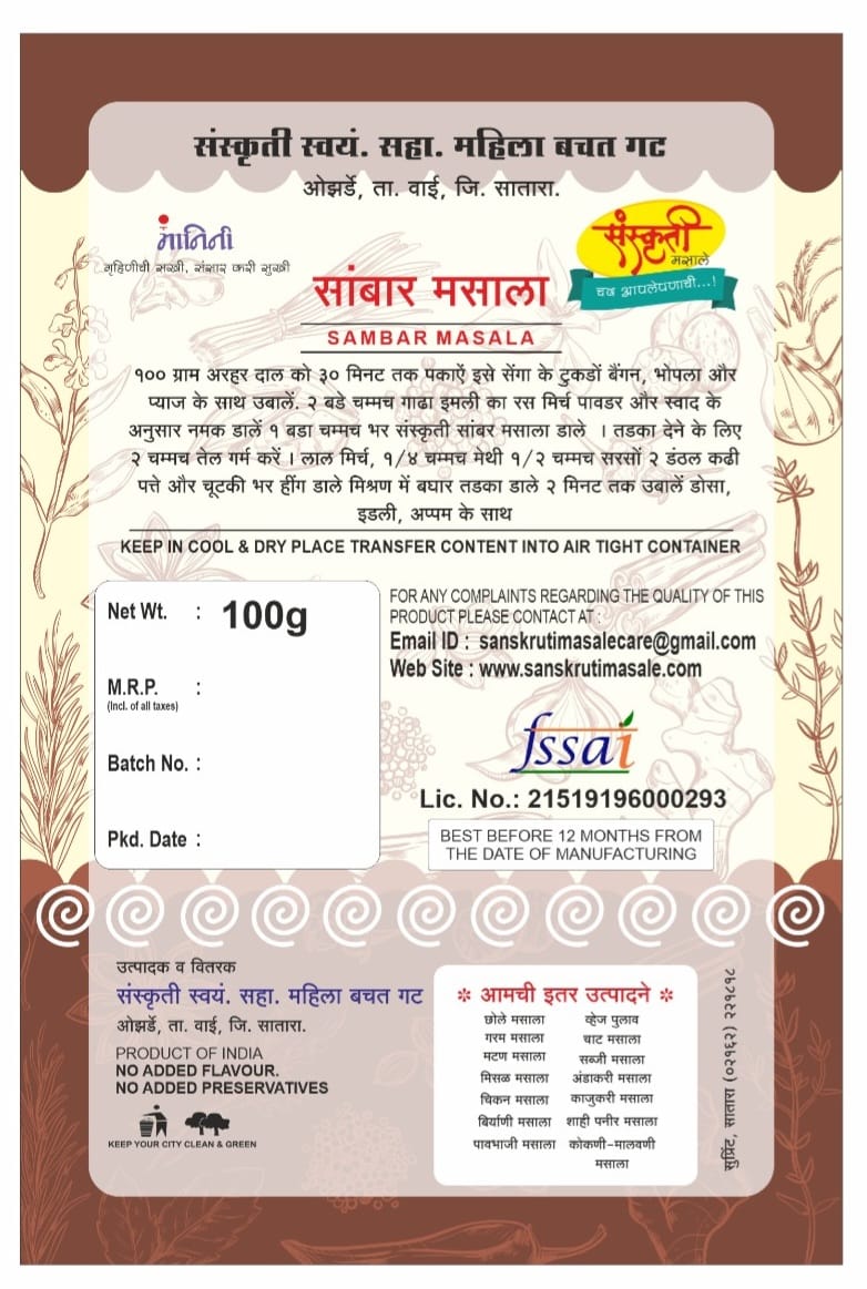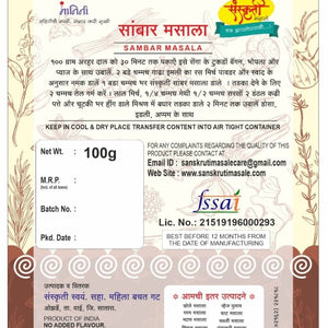 SANSKRUTI Sambar Masala,Made By Natural Ingredients,No Artificial flavour,pack of 100 gm