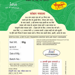 SANSKRUTI Sambar Masala,Made By Natural Ingredients,No Artificial flavour,pack of 50 gm