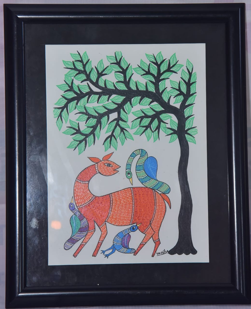 SHILPI SAKHI, Tribal Wall Art Artwork of Deer, Birds, and Tree Design, Decor, Local Craftsmanship, Pack Of 1