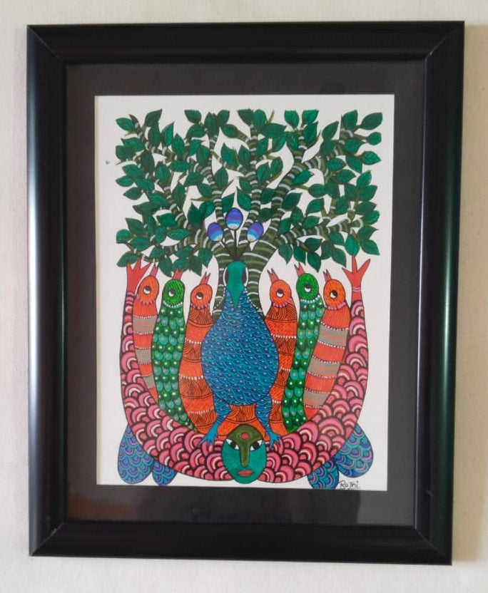SHILPI SAKHI, Tribal Wall Art, Handcrafted Artwork of Peacock, Fish, and Tree Design, Decor, Local Craftsmanship, Pack Of 1