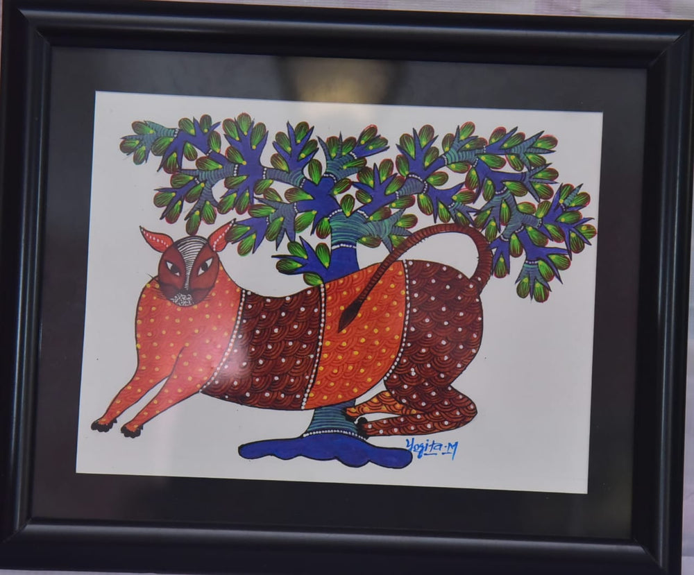 SHILPI SAKHI, Tribal Wall Art, Sacred Cow and Tree Design, Decor, Local Craftsmanship, Pack Of 1