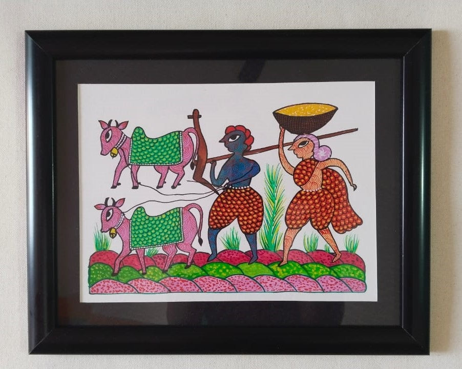 SHILPI SAKHI, Tribal Wall Art, Traditional Rural Life Print, Decor, Local Craftsmanship, Pack Of 1