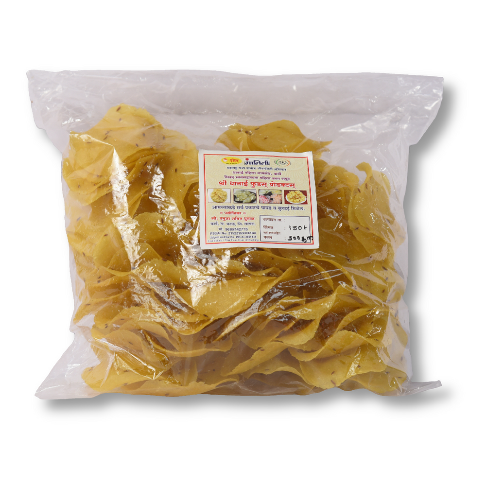 - Handcrafted Excellence: Each pack contains 500 gm of rice papad, skillfully crafted by the artisans of Shivam Swayam Sahayata Mahila bachat Samuh in Karad Satara, Maharashtra, using traditional techniques passed down through generations.