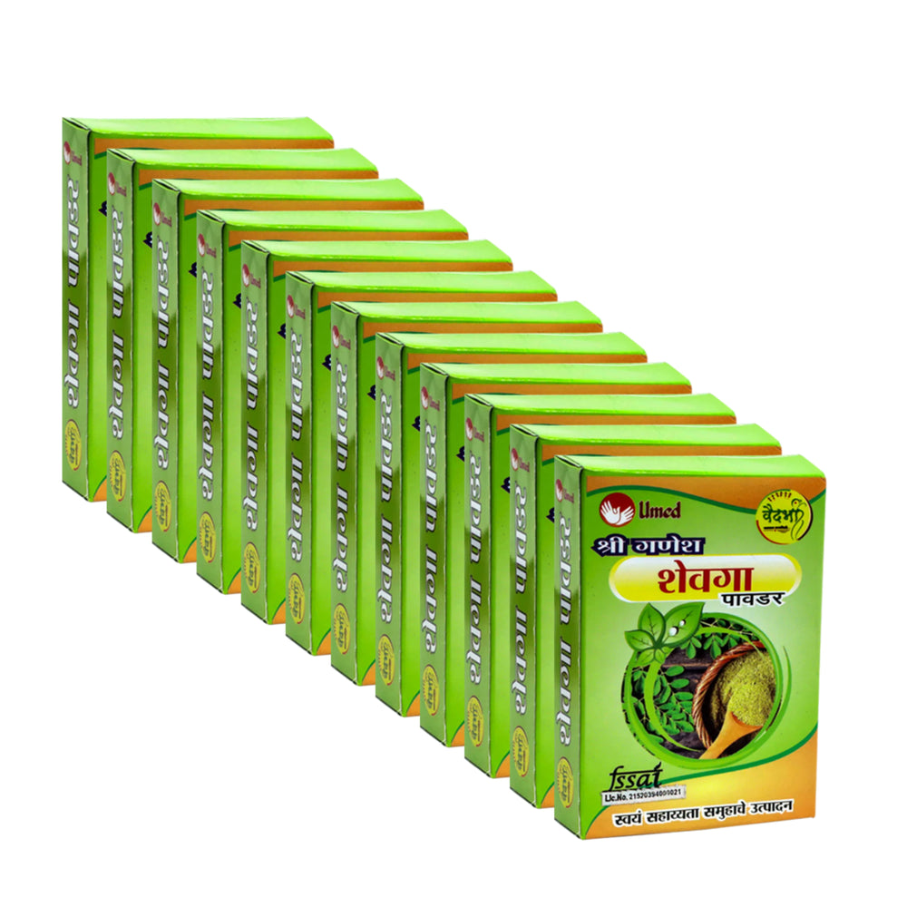 Bring home authentic wellness crafted by skilled rural women. Order the SHRI GANESH Shevga Powder Combo Pack of 12 exclusively on UmedMart.com.
