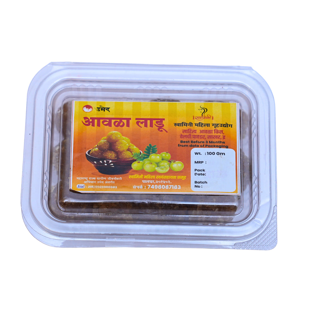 Indulge in the goodness of Awala Ladu, a delicious and **nutrient-rich Ayurvedic sweet** made from **pure Amla (Indian Gooseberry)**. Handcrafted by the women of **Swamini SHG**, this **traditional health food** is packed with **Vitamin C, antioxidants, and natural nutrients** that support immunity and overall well-being. Sourced from rural Maharashtra, these laddus are made with **jaggery for natural sweetness**, offering a healthier alternative to refined sugar-based sweets.