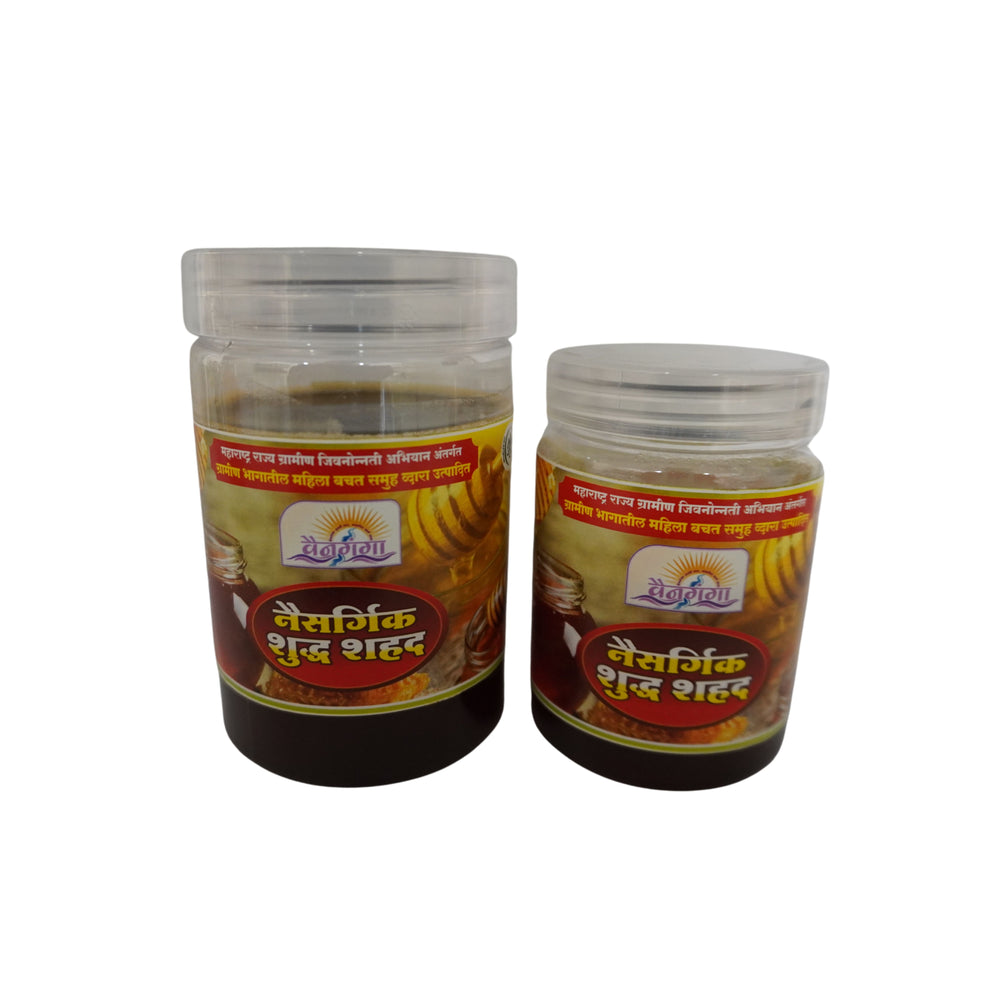 Taste the purity of nature with VAINGANGA Natural Honey, a 100% pure and unprocessed honey made by the dedicated women of Shri Sant Gadagebaba Self Help Group (SHG) in Bhandara district, Maharashtra. This honey is extracted directly from the beehives using traditional and ethical beekeeping practices, ensuring that every drop retains its natural enzymes, antioxidants, and health-boosting properties.