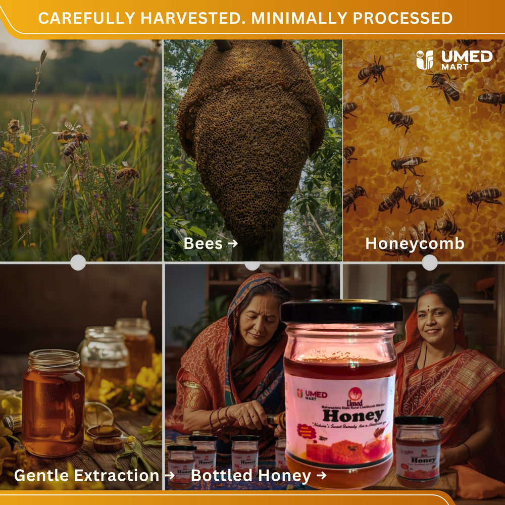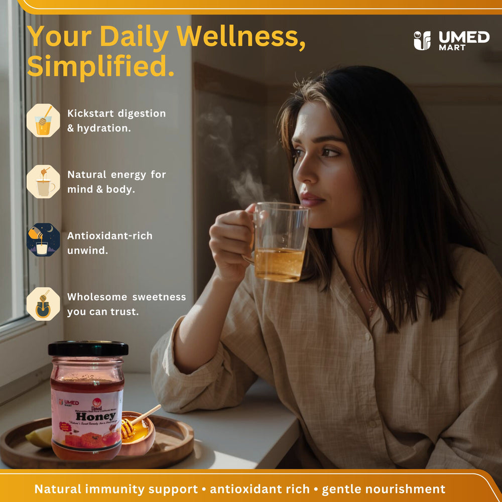 Indulge in the natural goodness of **Pure Natural Honey** and enjoy its incredible health benefits. Order now from UmedMart.com and support women artisans while embracing wellness!
